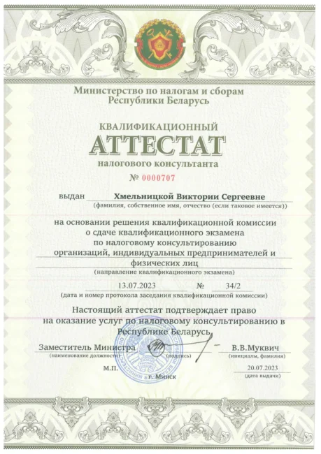 Квалификационный аттестат налогового консультанта